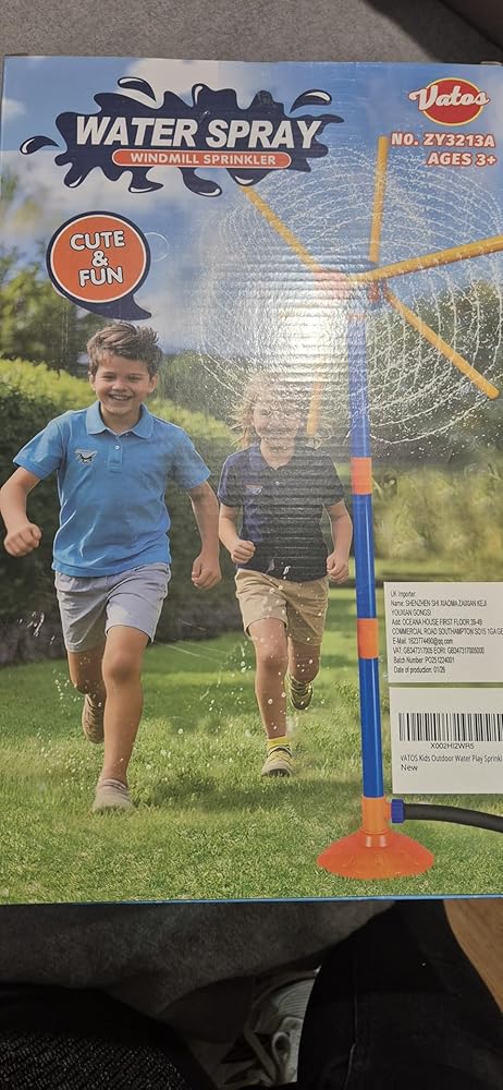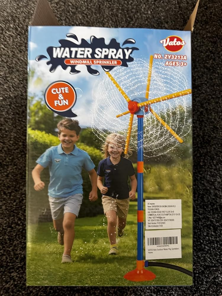 now this outdoor water sprinkler has been much fun for my childrenthey have non stopped laughed at the windmill sprinkling out waterthey have not just had fun with it, but the dog has too.He joined in also.this is an all round family funit is very simple but also very effective.it is easy to put together and you can have hours of fun.when the kids have had enough, we have been usin g it to water our grass.2 in 1 toy - what a bonus.at the time of review - this was 16.99 and worth every p e n n yif you want summer fun, this is the way to go.