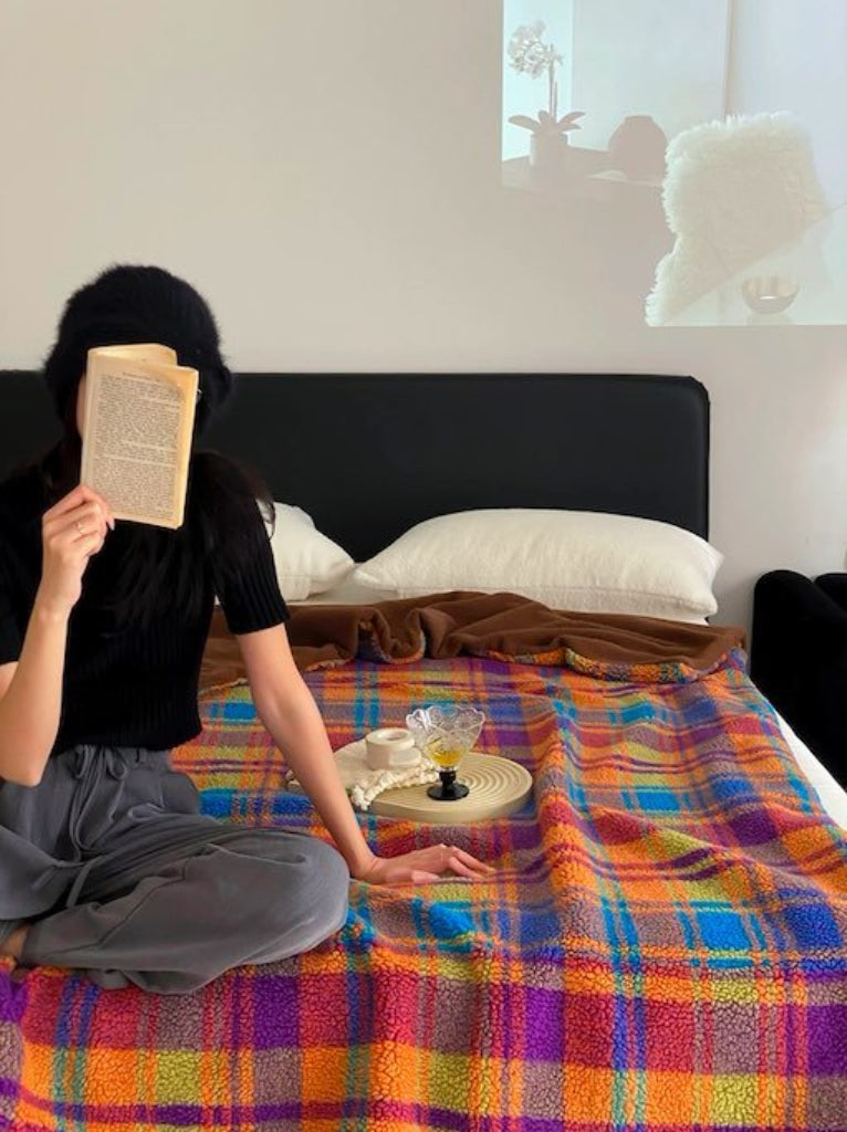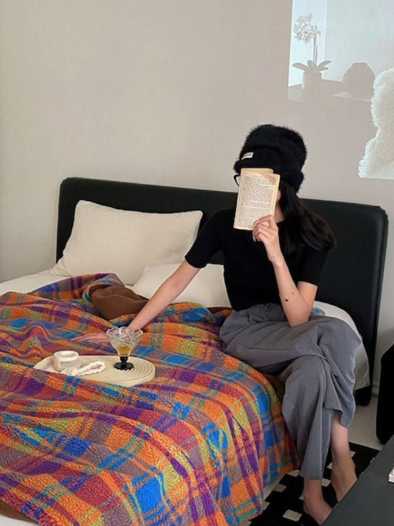 Well engineered with a 2-sides design, this dopamine throw blanket is not only visually stunning, they are also practical for everyday use. The front side of the blanket is made from premium polar fleece, giving it the impossibly soft texture and making it free from static. While the other side is made from woolyarn, wrapping you in ultra warmth and comfort. This cozy throw blanket is not just a treat for your senses but is also safe for babies and pregnant women. It is made with the highest standards of quality and safety in mind, ensuring that you can snuggle up in comfort without any worries.